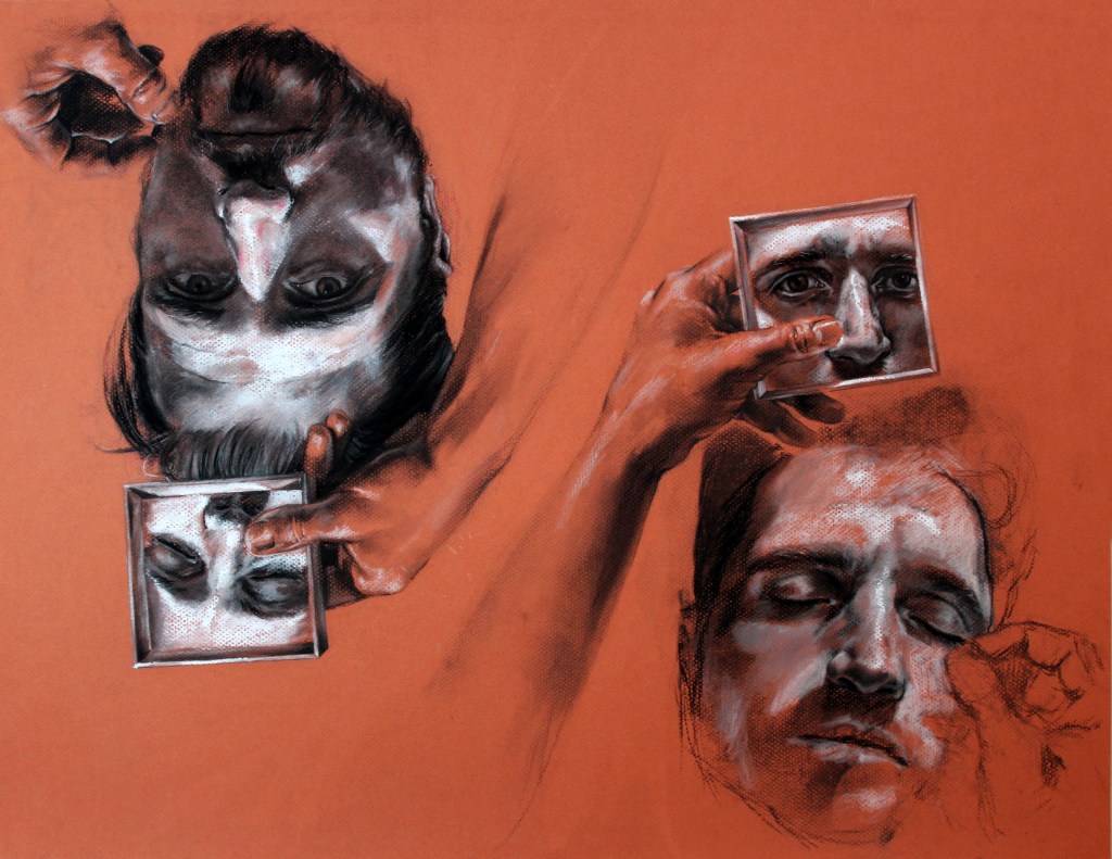 Essa circunscrição, essa colagem do Eu ideal ao Ideal de Eu constrange absolutamente a expressão do individual, ou seja justamente daquilo que não é o outro, daquilo que diz do próprio “eu”. Efetivamente, é impossível vislumbrar toda a inteireza de nosso ser na subjetividade porque o sujeito é justamente aquela máscara que, quando arrancada, dá a ver outra máscara, e mais outra… até o nada. Poderíamos reconhecer que o destino ético e poético do ser é encarar-se no espelho para além das identificações – para além da própria imagem, assumindo que aquilo que lhe constitui é também o alheio, estranho, não pertencente a si mesmo, logo não define a experiência subjetiva de forma absoluta. O problema não é estar identificado com algo – parte essencial da experiência subjetiva se dá por meio da percepção, fundamentalmente identificativa, associativa, especular e movida por re-conhecimentos (parte que conhecemos pelo nome de “sujeito”): o problema é estar identificado com o próprio processo de identificação. Quando a subjetividade e sua ampla rede de conexões com o mundo é reduzida apenas à função “sujeito” e este se fixa à “identidade”, oblitera-se as condições de emergência do desejo.